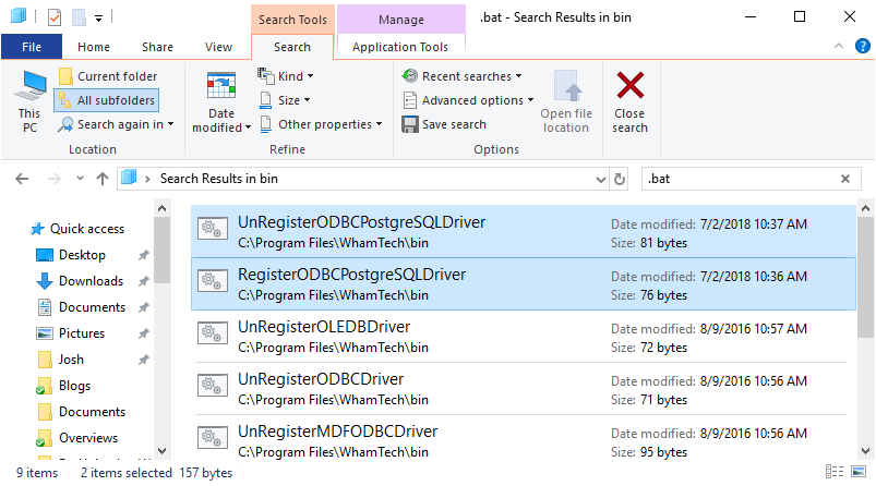 o Use the “Register ODBCPostgreSQL Driver” .bat file in the WhamTech bin folder. (Figure 1)