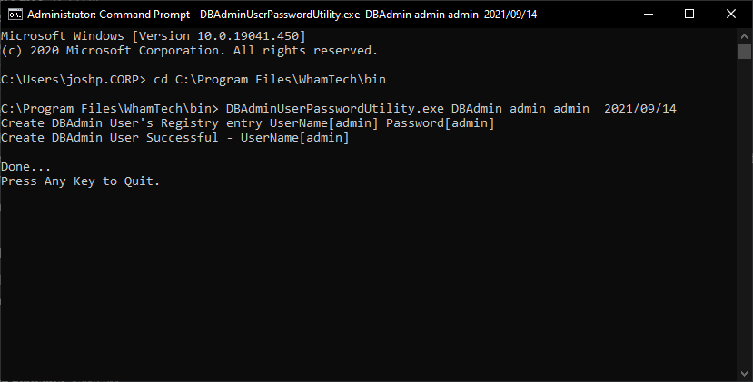 included in the installation files to reset the password. The DBAdminUserPasswordUtility is