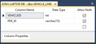 The VEHICLE_LINK table associates persons with their vehicles through the PER_ID and VEHICLEID columns.
