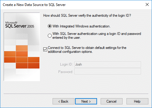 Once the "Create New Data Source to SQL Server" window pops-up, follow these steps: