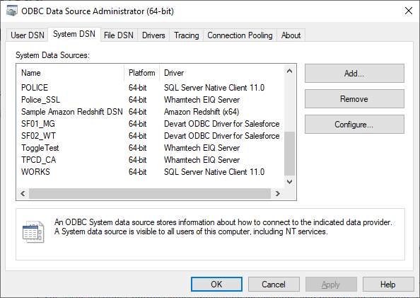 Open the ODBC Data Source Administrator and