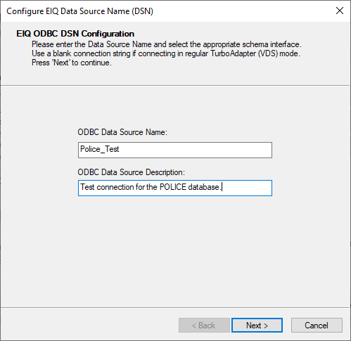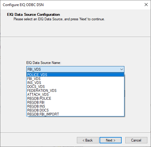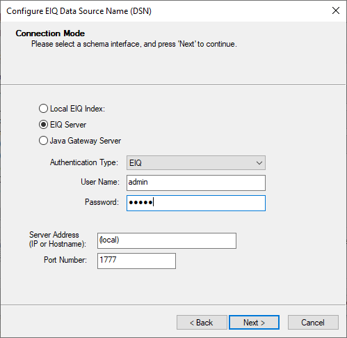 for the server where the data source is located. For ‘EIQ Server’ this will be
