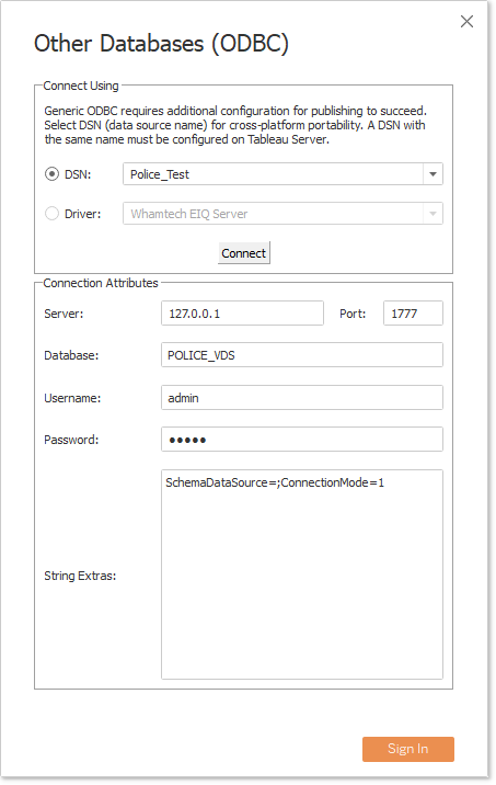 Connecting Using an ODBC DSN