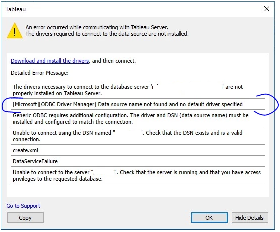 driver specified.” This error is cause by one of two reasons: ·