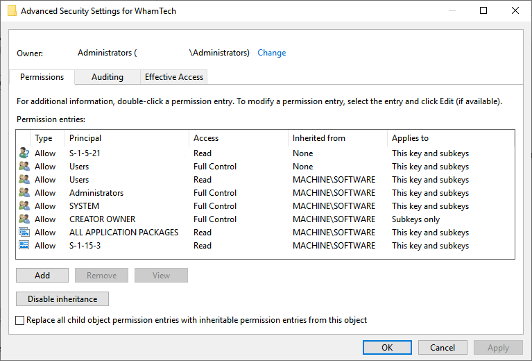 the Registry path “HKEY_LOCAL_MACHINE\SOFTWARE\WhamTech”. o