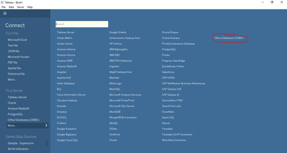 Select ‘Other Databases (ODBC)’ under the ‘To a
