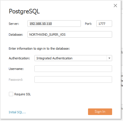 Select “Integrated Authentication” as the