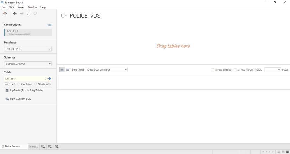 Begin creating a dashboard. If the permissions or connections aren’t set-up correctly, Tableau