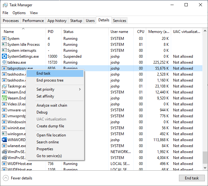 Add User or Group: Add the User running Tableau